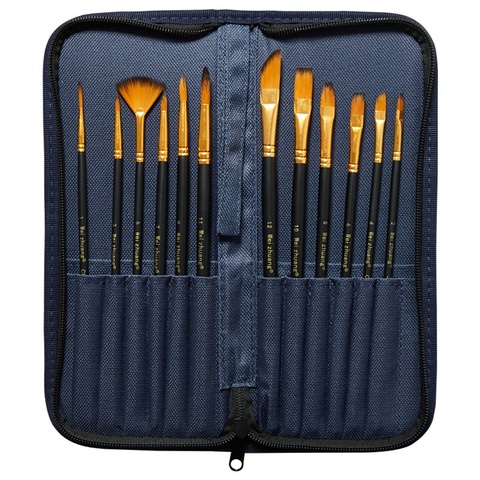 油絵アクリルと水彩画に使用されるナイロンヘアアーティストブラシの12ピースセットすべてキャンバスバッグにパック